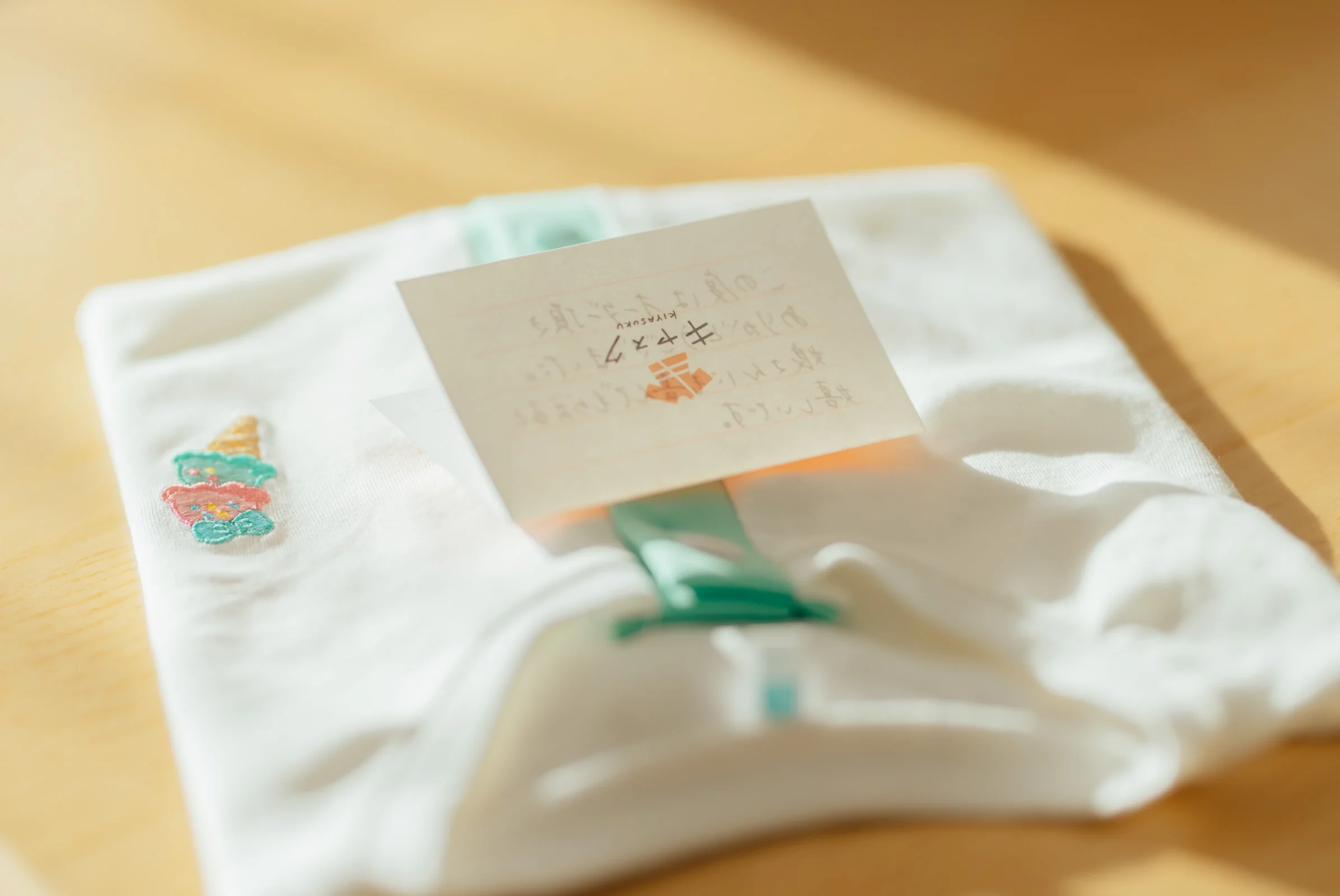 ミシンの音が響く小さな部屋で、キヤストは、とても静かなやさしさを服に宿していきます。その服が、ハレ日の一枚だったり、自分で脱ぎ着ができるようになった一枚になればいいなと、想いをこめながら。縫い終えた服には、手書きのカードを添えて。お届けするまでが、キヤスクの仕事です。